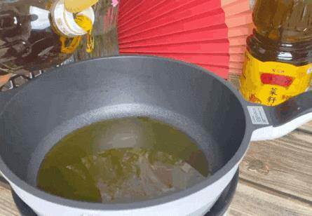 鍋內倒入適量外婆鄉小榨菜籽油,搖動鍋子或推鍋鏟讓油分部在鍋內壁均勻加熱,一定要熱鍋熱油,油冒煙后再放入食材,可以輕松去掉蝦的腥味;